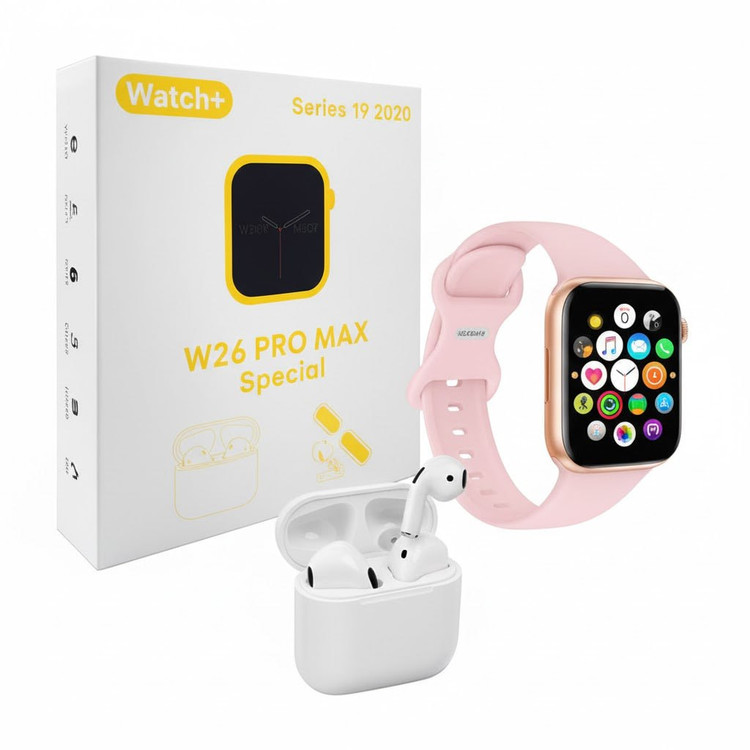 ساعت هوشمند W26 Pro max به همراه ایرپاد و 2 جفت بند