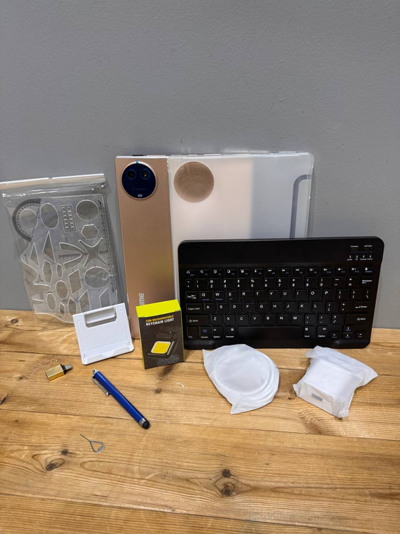 اقلام همراه: کیبورد بیسیم - موس بلوتوثی - چراغ led - قلم هوشمند- قاب و شارژر کامل